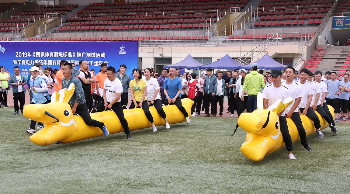 為辦好本屆運(yùn)動(dòng)會(huì),集團(tuán)公司工會(huì)進(jìn)行了有益的創(chuàng)新,借助寧夏體育局2019寧夏《國(guó)家體育鍛煉標(biāo)準(zhǔn)》推廣活動(dòng)平臺(tái),與寧夏社會(huì)體育服務(wù)中心合辦,將趣味體育游戲和團(tuán)隊(duì)建設(shè)相結(jié)合,融合了力量、技巧、趣味、智力、團(tuán)隊(duì)等元素,共安排了曲線脫球跑接力賽、一分鐘俯臥撐計(jì)數(shù)挑戰(zhàn)賽、30秒跳繩計(jì)數(shù)挑戰(zhàn)賽、4人5足綁腿跑速度賽、摸石過河、旱地龍舟賽、快樂彩虹傘等7個(gè)團(tuán)隊(duì)競(jìng)賽項(xiàng)目。來自集團(tuán)本部及各控股公司的6支隊(duì)伍,共225名職工、372人次同場(chǎng)競(jìng)技,比賽不分男女、不分年齡,大家分享體育運(yùn)動(dòng)帶來的樂趣,歡呼聲與歡笑聲為運(yùn)動(dòng)會(huì)增添了無限的青春和活力。