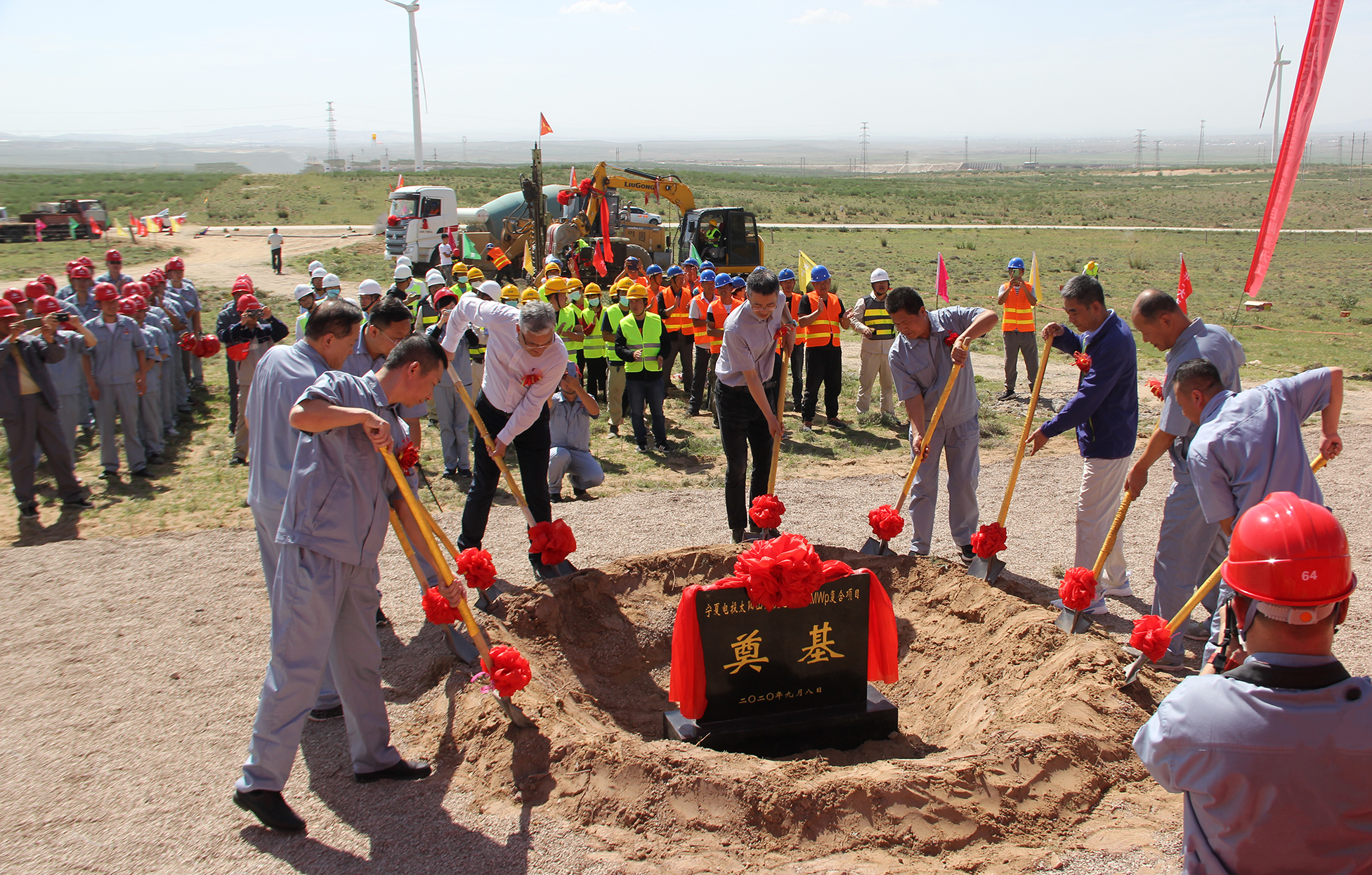 9月8日,伴隨著工程機(jī)械的啟動(dòng),寧夏電投太陽山光伏電站100MWp復(fù)合項(xiàng)目正式開工建設(shè)。集團(tuán)公司規(guī)劃部、新能源公司、承建單位、監(jiān)理單位負(fù)責(zé)人及參建工作人員共同參加了項(xiàng)目開工。