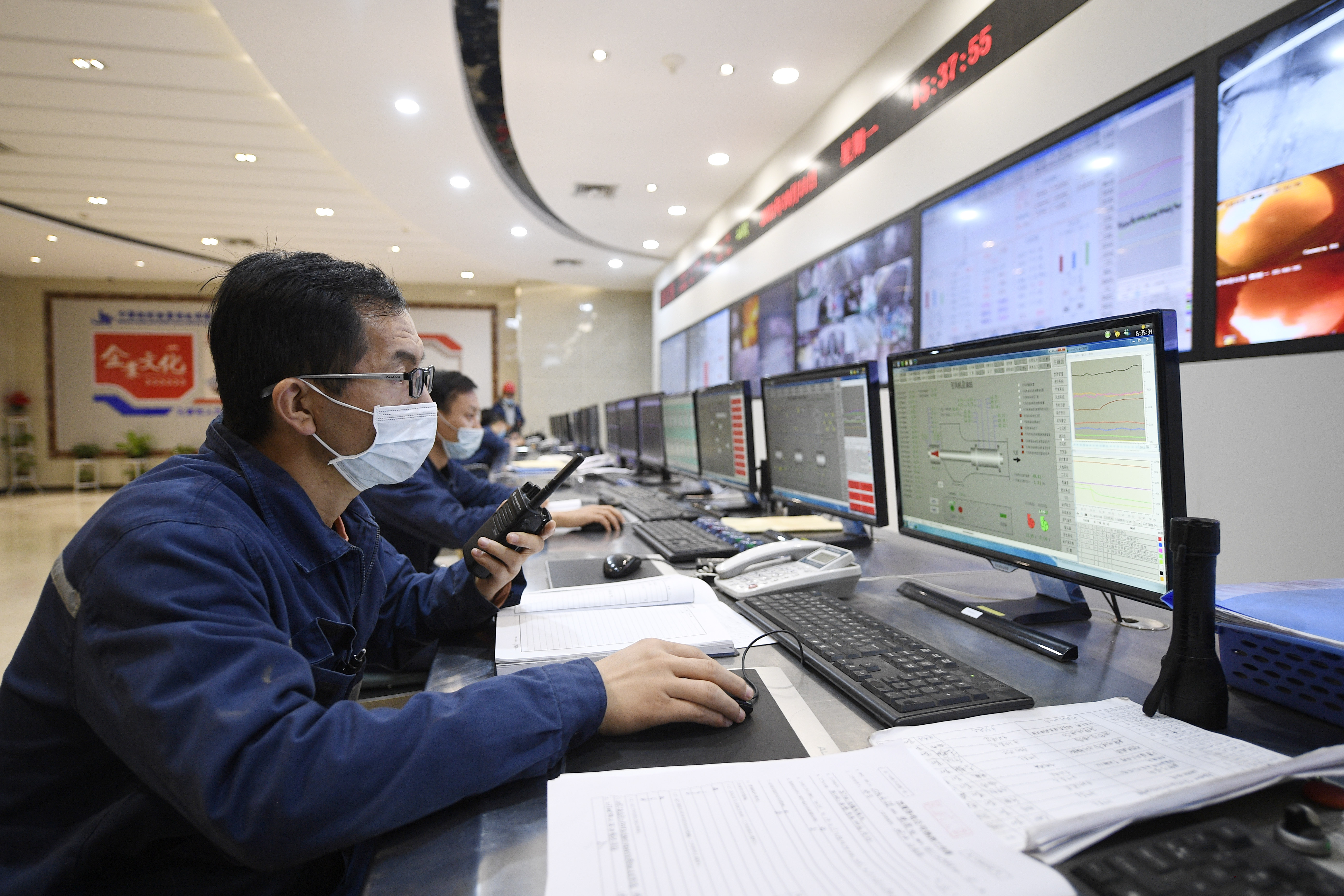 2021年10月,銀川熱電公司職工認(rèn)真調(diào)整設(shè)備參數(shù),確保機(jī)組正常供熱。